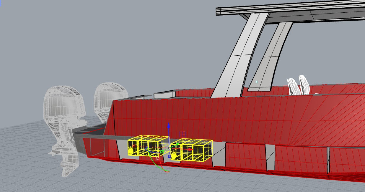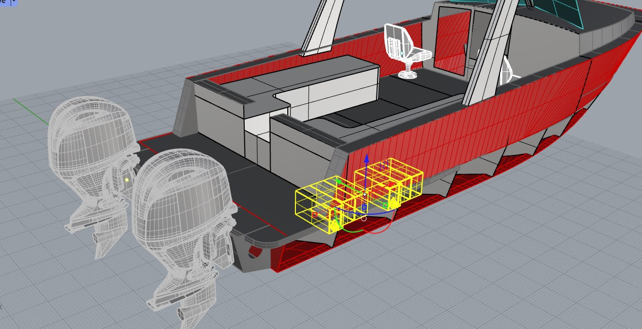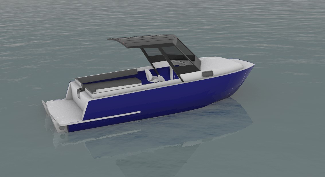 Working with Wolverine Boat Works and Flux Marine, we were able to design the hull around the dimensions and weight of the batteries. With 56kWh of capacity per motor, the Tango One would have less battery capacity compared with other boats on the market. But unlike other boats, the Tango One was designed with maximum hull efficiency in mind. Her catamaran style hull would reduce wetted surface area, and her foils would help reduce drag.