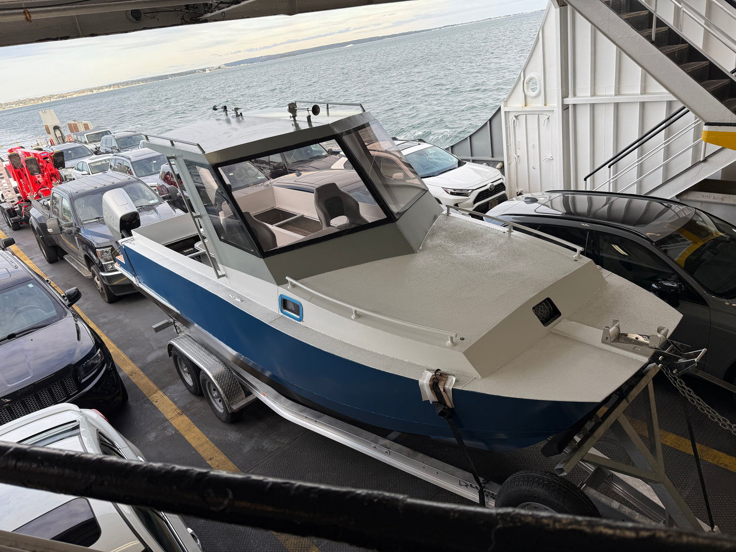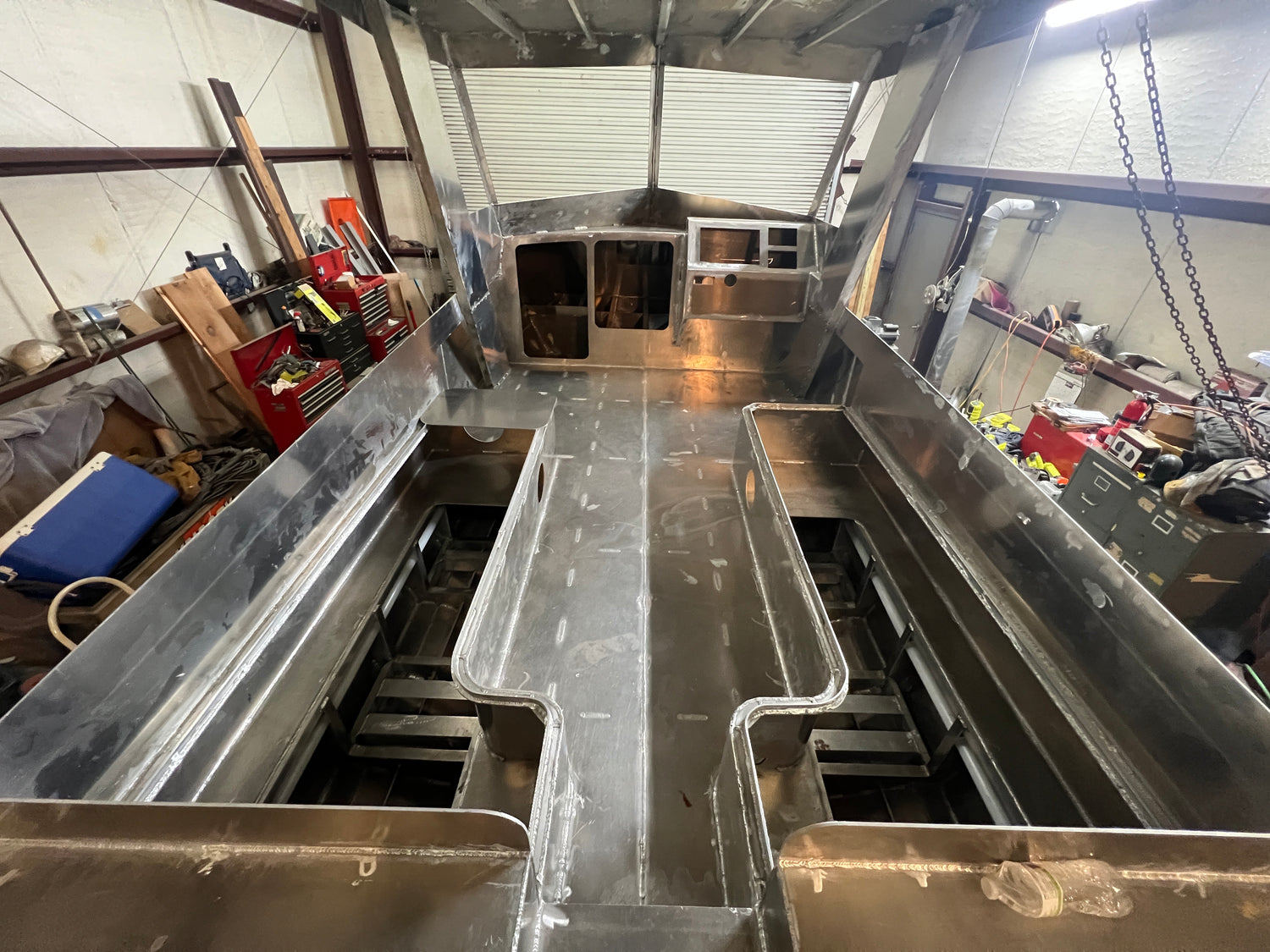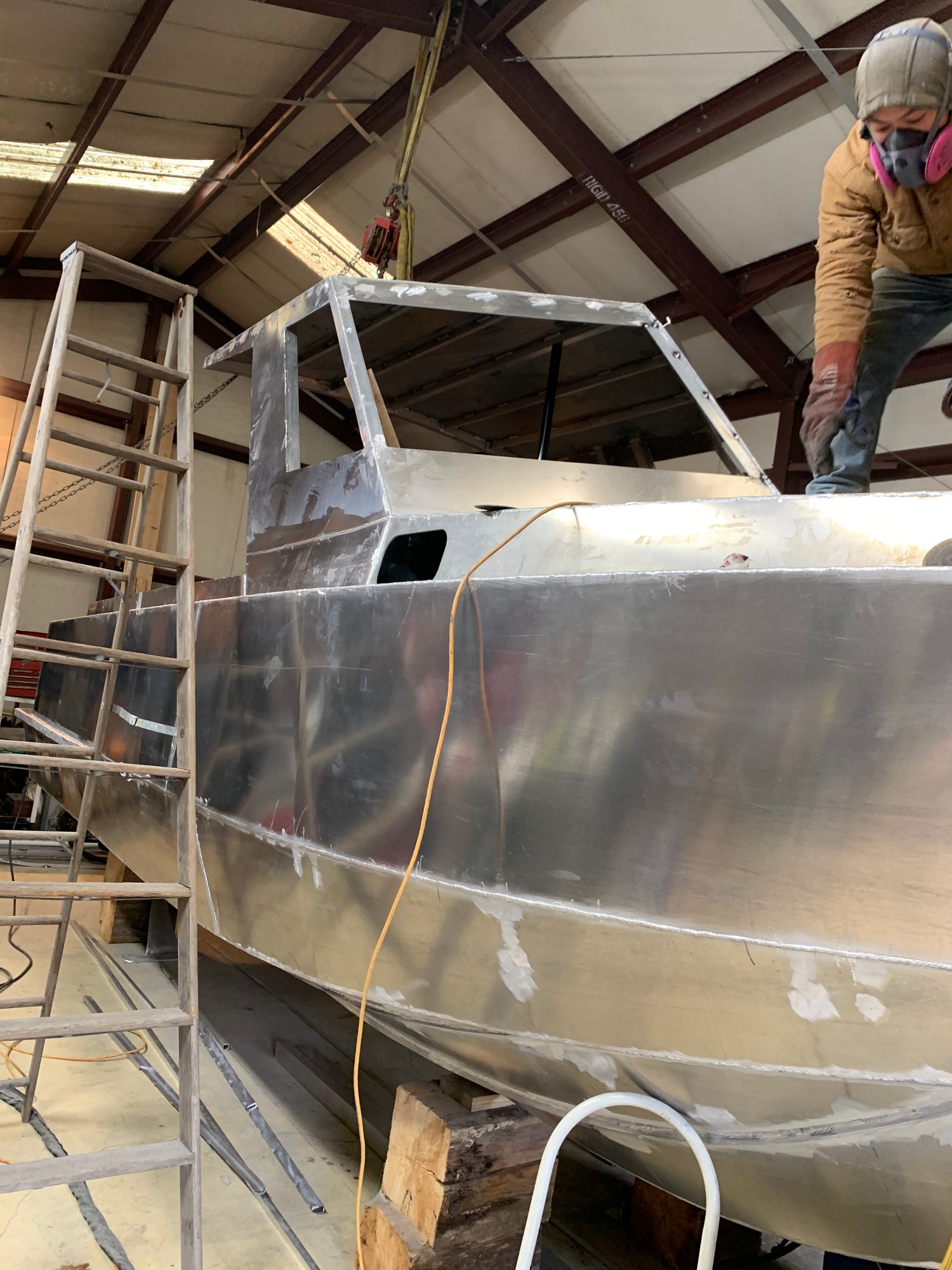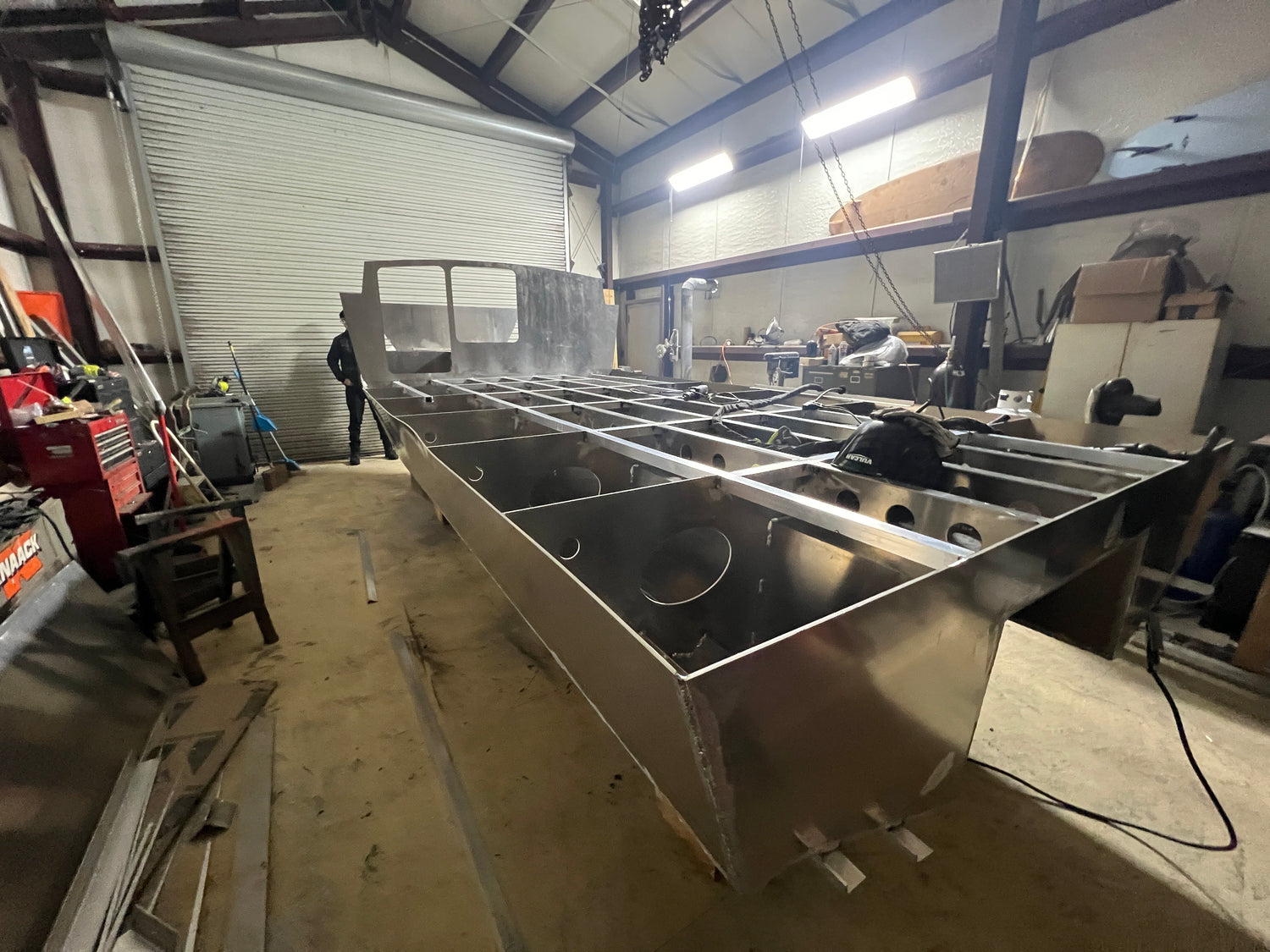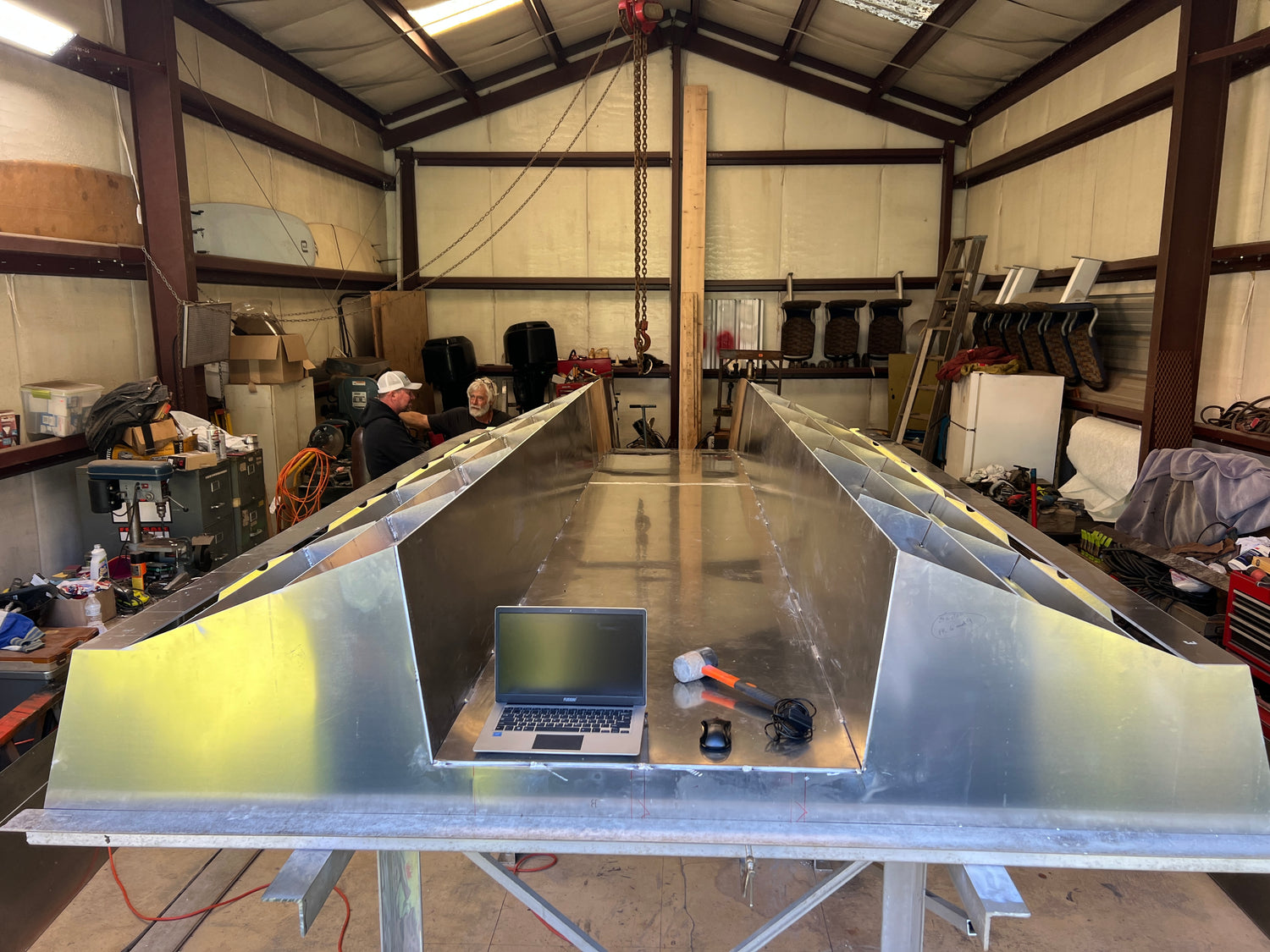 Once the design process was complete, we worked with Mowbray Custom Fabrication and Malay Laser to fabricate the hull in Warwick, Rhode Island. Progress was slow and steady, but over time, the boat began to come together.