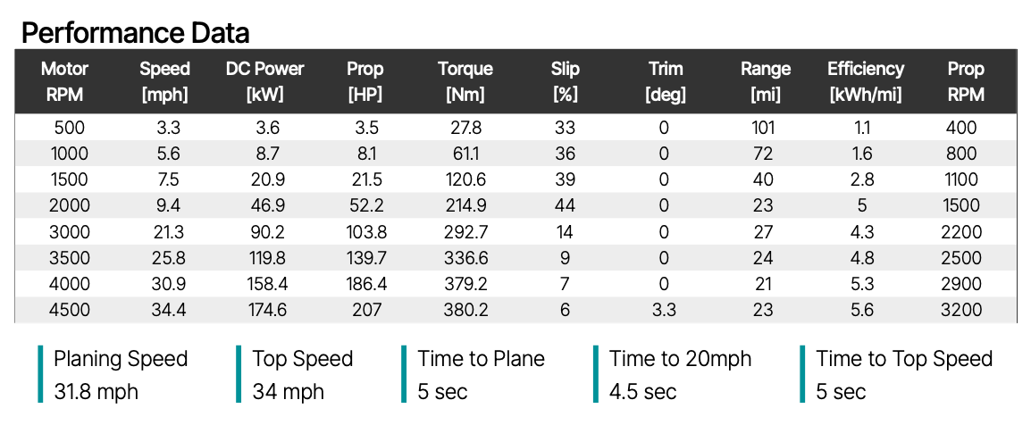 Our initial testing data is below. The performance report and testing indicates that the foils and propellers are not optimized, and much more testing is in the works!
